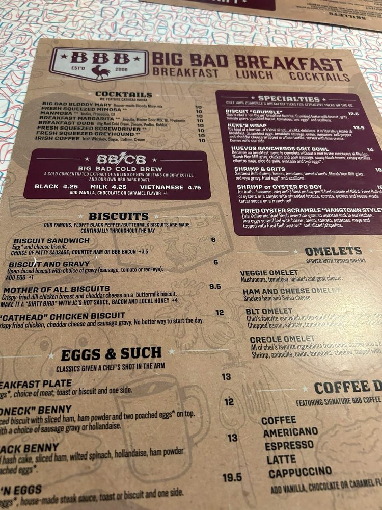 Big Bad Breakfast - Charleston Menu